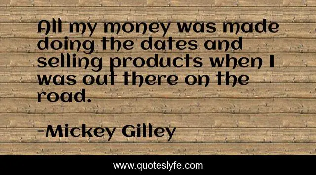 This page presents the quote "All my money was made doing the dates and selling products when I was out there on the road.". Author of this quote is Mickey Gilley. This quote is about selling, products, road,.