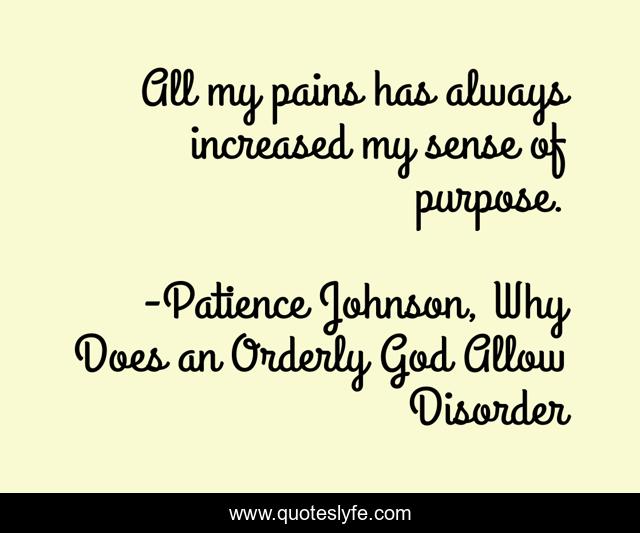"Patience Johnson, Why Does an Orderly God Allow Disorder Quotes." Quoteslyfe.com, 2025. Mon. 08 Dec. 2025. <https://www.quoteslyfe.com/quote/All-my-pains-has-always-increased-my-20602>.