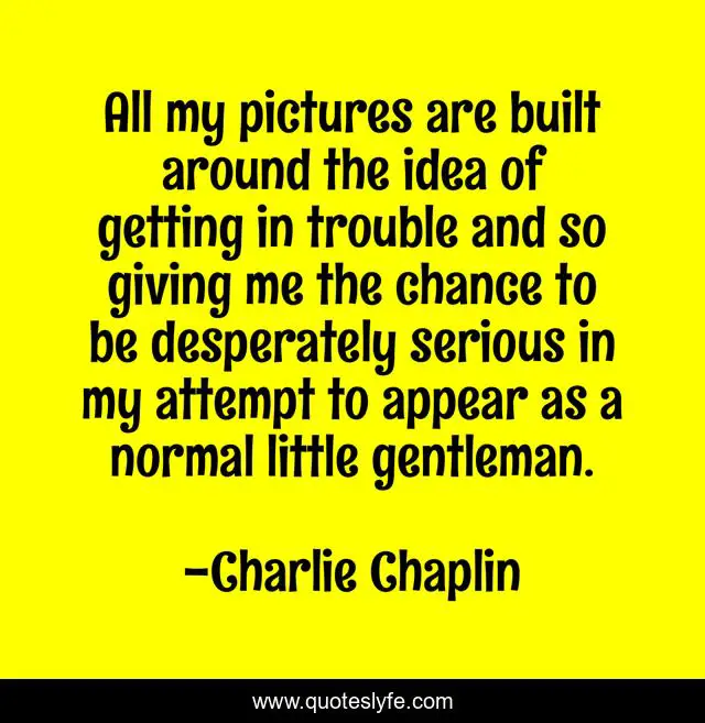 This page presents the quote "All my pictures are built around the idea of getting in trouble and so giving me the chance to be desperately serious in my attempt to appear as a normal little gentleman.". Author of this quote is Charlie Chaplin. This quote is about giving, me, gentleman,.