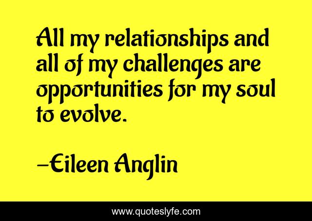 This page presents the quote "All my relationships and all of my challenges are opportunities for my soul to evolve.". Author of this quote is Eileen Anglin. This quote is about spiritual-growth, evolving, spiritual-wisdom, spiritual, soul, soul-growth,.