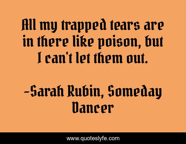 This page presents the quote "All my trapped tears are in there like poison, but I can't let them out.". Author of this quote is Sarah Rubin, Someday Dancer. .