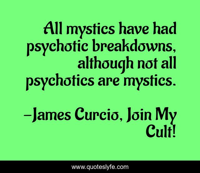 "James Curcio, Join My Cult! Quotes." Quoteslyfe.com, 2025. Mon. 08 Dec. 2025. <https://www.quoteslyfe.com/quote/All-mystics-have-had-psychotic-breakdowns-although-247645>.