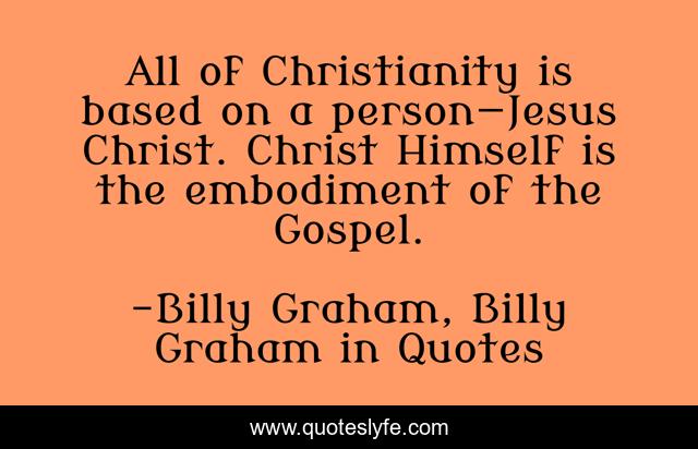 This page presents the quote "All of Christianity is based on a person—Jesus Christ. Christ Himself is the embodiment of the Gospel.". Author of this quote is Billy Graham, Billy Graham in Quotes. This quote is about billy-graham, christianity,.