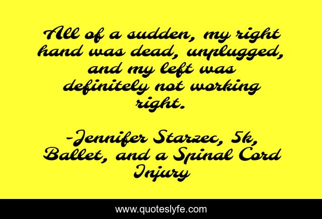 "Jennifer Starzec, 5k, Ballet, and a Spinal Cord Injury Quotes." Quoteslyfe.com, 2025. Fri. 05 Dec. 2025. <https://www.quoteslyfe.com/quote/All-of-a-sudden-my-right-hand-151743>.