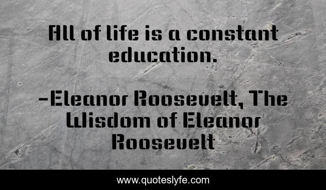 "Eleanor Roosevelt, The Wisdom of Eleanor Roosevelt Quotes." Quoteslyfe.com, 2025. Mon. 08 Dec. 2025. <https://www.quoteslyfe.com/quote/All-of-life-is-a-constant-education-33392>.