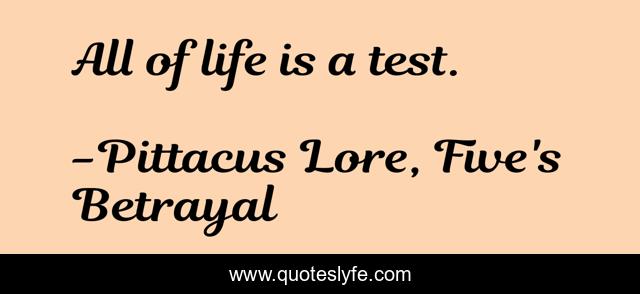 "Pittacus Lore, Five's Betrayal Quotes." Quoteslyfe.com, 2025. Sat. 06 Dec. 2025. <https://www.quoteslyfe.com/quote/All-of-life-is-a-test-157304>.