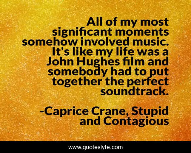This page presents the quote "All of my most significant moments somehow involved music. It's like my life was a John Hughes film and somebody had to put together the perfect soundtrack.". Author of this quote is Caprice Crane, Stupid and Contagious. This quote is about life, music,.