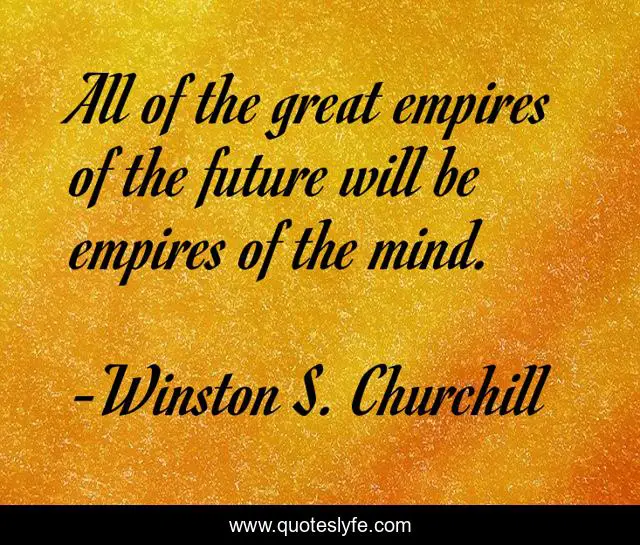 This page presents the quote "All of the great empires of the future will be empires of the mind.". Author of this quote is Winston S. Churchill. This quote is about kingdom, enthusiasm, prognostication, inspirational,.