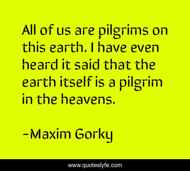 This page presents the quote "All of us are pilgrims on this earth. I have even heard it said that the earth itself is a pilgrim in the heavens.". Author of this quote is Maxim Gorky. This quote is about earth, heavens, pilgrim,.