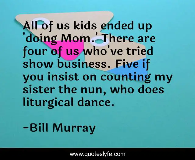 This page presents the quote "All of us kids ended up 'doing Mom.' There are four of us who've tried show business. Five if you insist on counting my sister the nun, who does liturgical dance.". Author of this quote is Bill Murray. This quote is about dance, sister, business,.