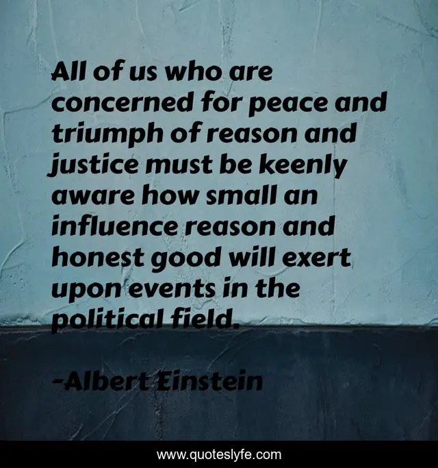 This page presents the quote "All of us who are concerned for peace and triumph of reason and justice must be keenly aware how small an influence reason and honest good will exert upon events in the political field.". Author of this quote is Albert Einstein. .