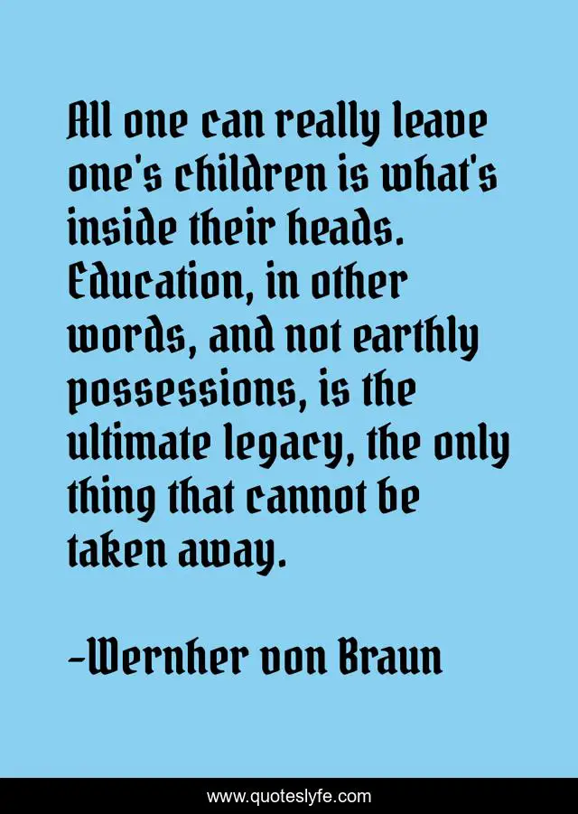 "Wernher von Braun Quotes." Quoteslyfe.com, 2025. Mon. 08 Dec. 2025. <https://www.quoteslyfe.com/quote/All-one-can-really-leave-one-s-14593>.