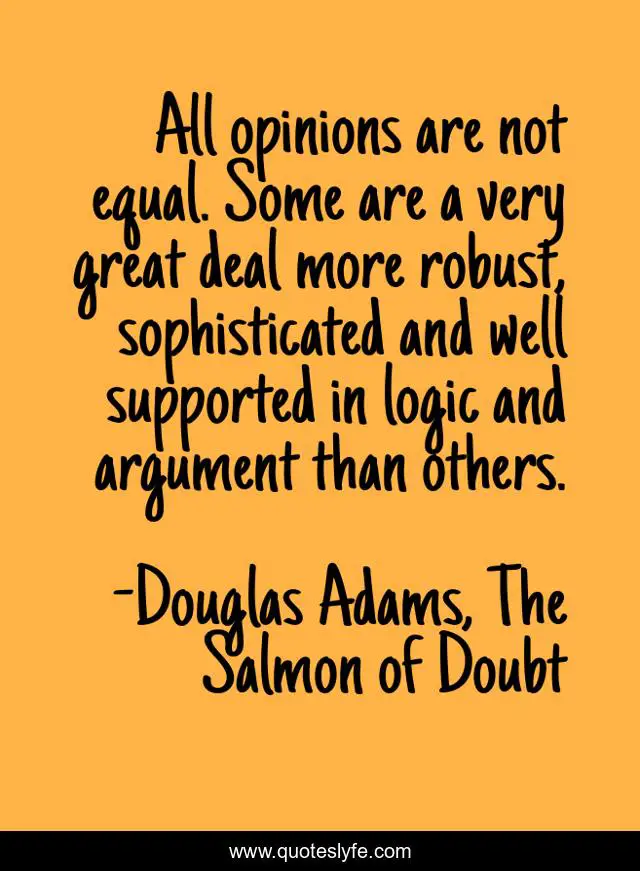 "Douglas Adams, The Salmon of Doubt Quotes." Quoteslyfe.com, 2025. Sun. 07 Dec. 2025. <https://www.quoteslyfe.com/quote/All-opinions-are-not-equal-Some-are-2301>.
