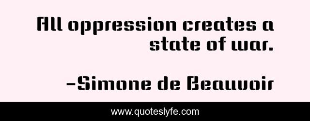 "Simone de Beauvoir Quotes." Quoteslyfe.com, 2025. Mon. 08 Dec. 2025. <https://www.quoteslyfe.com/quote/All-oppression-creates-a-state-of-war-285733>.