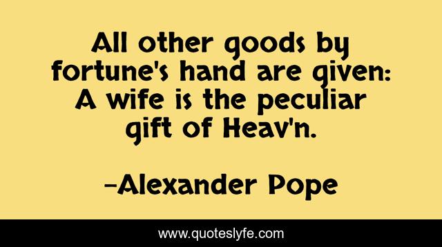 This page presents the quote "All other goods by fortune's hand are given: A wife is the peculiar gift of Heav'n.". Author of this quote is Alexander Pope. .