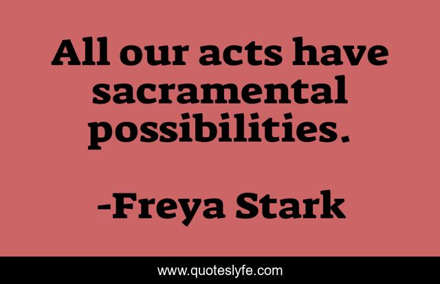 This page presents the quote "All our acts have sacramental possibilities.". Author of this quote is Freya Stark. This quote is about faith, unity,.