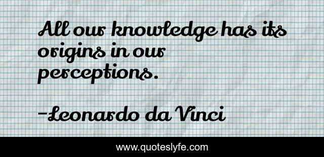 This page presents the quote "All our knowledge has its origins in our perceptions.". Author of this quote is Leonardo da Vinci. This quote is about our, perceptions, origins,.