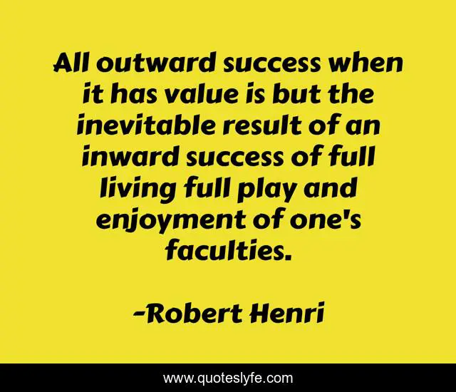 This page presents the quote "All outward success when it has value is but the inevitable result of an inward success of full living full play and enjoyment of one's faculties.". Author of this quote is Robert Henri. .