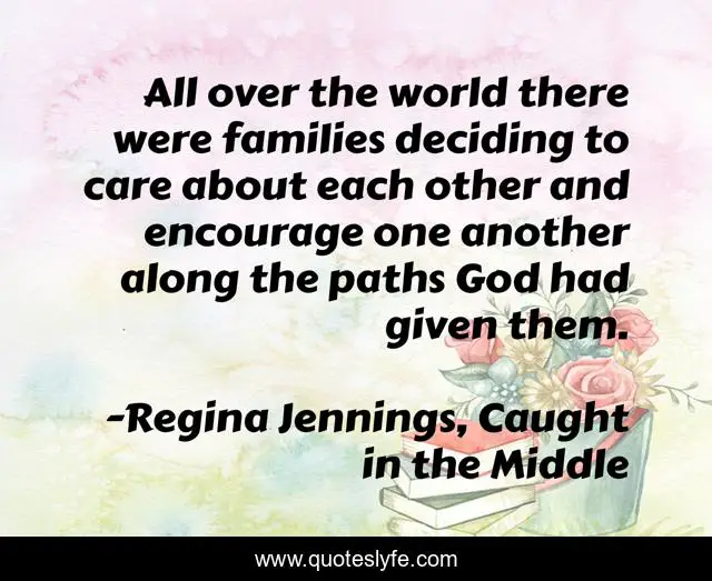 This page presents the quote "All over the world there were families deciding to care about each other and encourage one another along the paths God had given them.". Author of this quote is Regina Jennings, Caught in the Middle. This quote is about families, god, love, encouragement, affection,.