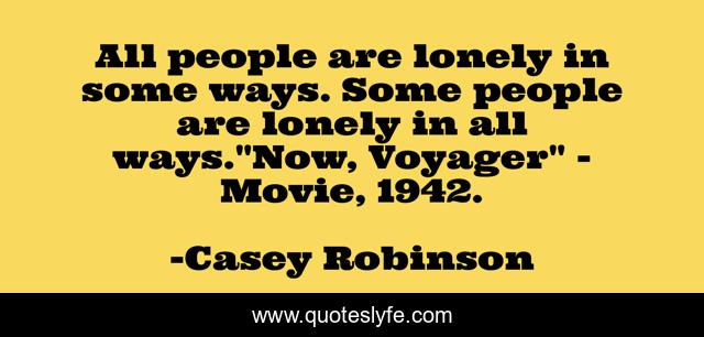This page presents the quote "All people are lonely in some ways. Some people are lonely in all ways."Now, Voyager" - Movie, 1942.". Author of this quote is Casey Robinson. .