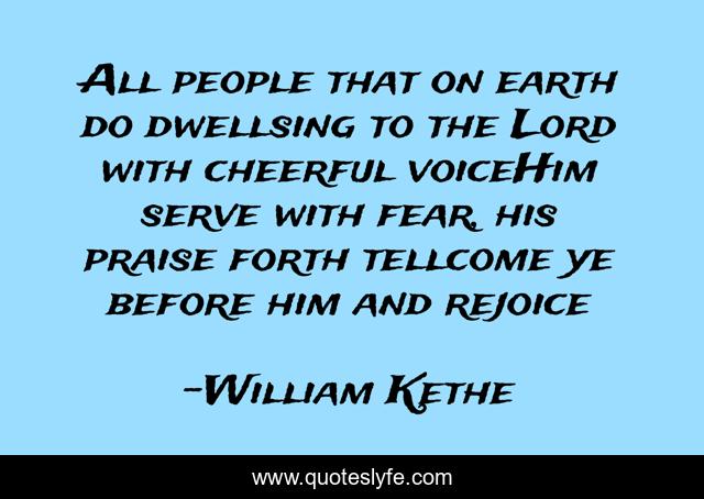 This page presents the quote "All people that on earth do dwellsing to the Lord with cheerful voiceHim serve with fear, his praise forth tellcome ye before him and rejoice". Author of this quote is William Kethe. This quote is about worship, praise,.