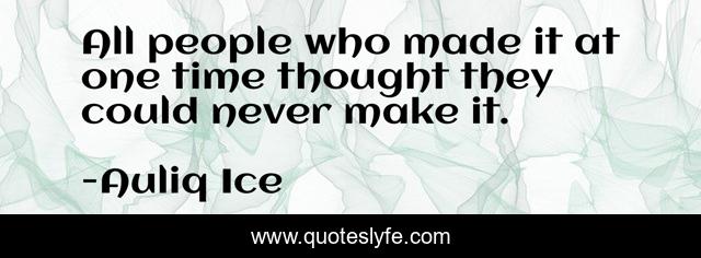 This page presents the quote "All people who made it at one time thought they could never make it.". Author of this quote is Auliq Ice. This quote is about succes, confidence, success, positive, motivational, inspiarational, failure, optimistic, inspirational,.