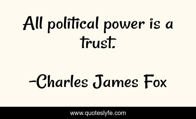 "Charles James Fox Quotes." Quoteslyfe.com, 2025. Mon. 08 Dec. 2025. <https://www.quoteslyfe.com/quote/All-political-power-is-a-trust-315820>.
