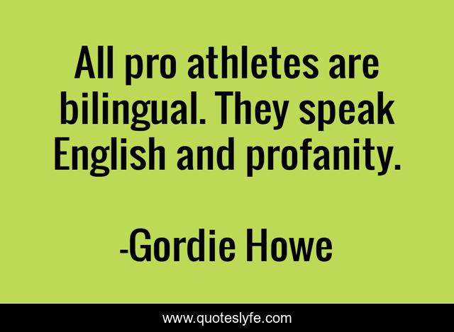 This page presents the quote "All pro athletes are bilingual. They speak English and profanity.". Author of this quote is Gordie Howe. .