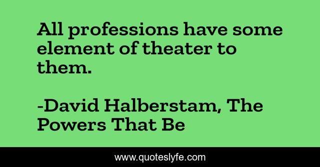 "David Halberstam, The Powers That Be Quotes." Quoteslyfe.com, 2025. Fri. 05 Dec. 2025. <https://www.quoteslyfe.com/quote/All-professions-have-some-element-of-theater-142137>.