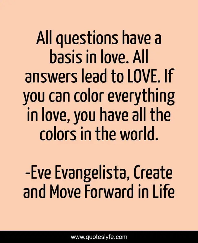 "Eve Evangelista, Create and Move Forward in Life Quotes." Quoteslyfe.com, 2025. Fri. 05 Dec. 2025. <https://www.quoteslyfe.com/quote/All-questions-have-a-basis-in-love-253021>.
