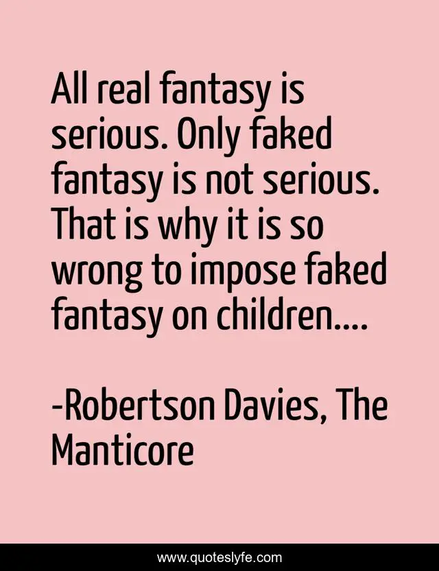 "Robertson Davies, The Manticore Quotes." Quoteslyfe.com, 2025. Sat. 06 Dec. 2025. <https://www.quoteslyfe.com/quote/All-real-fantasy-is-serious-Only-faked-81908>.