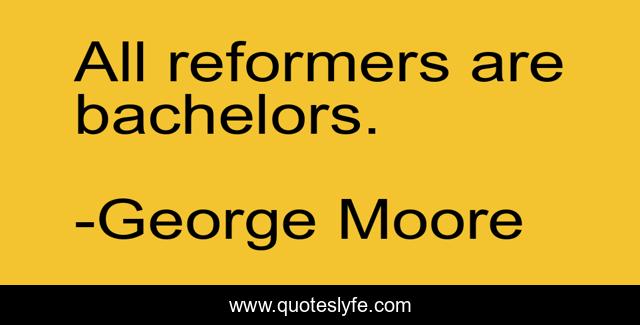 This page presents the quote "All reformers are bachelors.". Author of this quote is George Moore. This quote is about revolution, reform,.