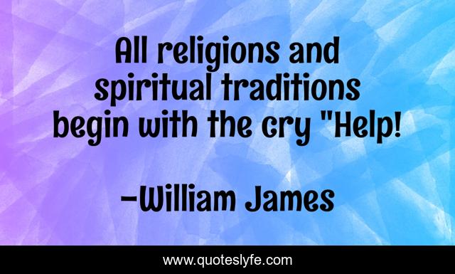 This page presents the quote "All religions and spiritual traditions begin with the cry "Help!". Author of this quote is William James. This quote is about religion, help,.