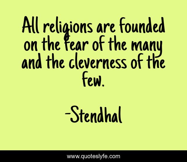 This page presents the quote "All religions are founded on the fear of the many and the cleverness of the few.". Author of this quote is Stendhal. This quote is about religions, many, few,.
