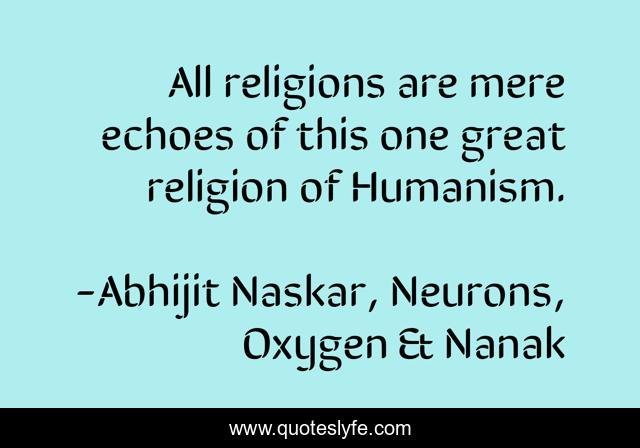 This page presents the quote "All religions are mere echoes of this one great religion of Humanism.". Author of this quote is Abhijit Naskar, Neurons, Oxygen & Nanak. This quote is about brainy, love, truth, compassion, science, science-and-religion, philosophy, humanism, inspirational,.