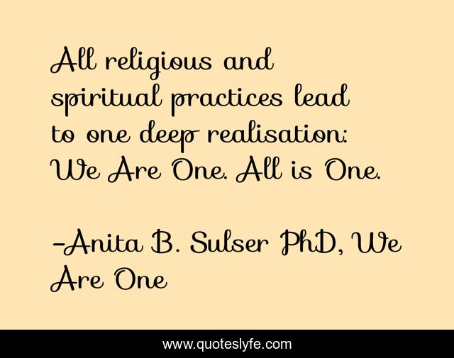 "Anita B. Sulser PhD, We Are One Quotes." Quoteslyfe.com, 2025. Fri. 05 Dec. 2025. <https://www.quoteslyfe.com/quote/All-religious-and-spiritual-practices-lead-to-54835>.