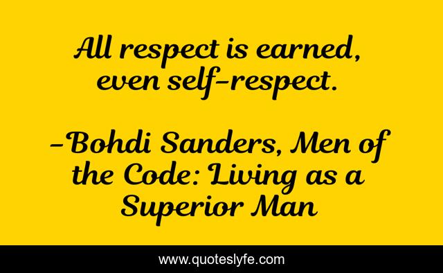"Bohdi Sanders, Men of the Code: Living as a Superior Man Quotes." Quoteslyfe.com, 2025. Sat. 06 Dec. 2025. <https://www.quoteslyfe.com/quote/All-respect-is-earned-even-self-respect-127560>.