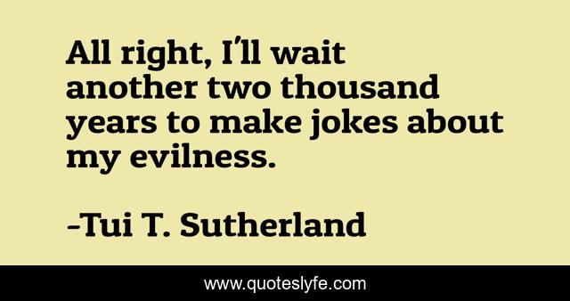 This page presents the quote "All right, I'll wait another two thousand years to make jokes about my evilness.". Author of this quote is Tui T. Sutherland. This quote is about funny, comedy, humor,.