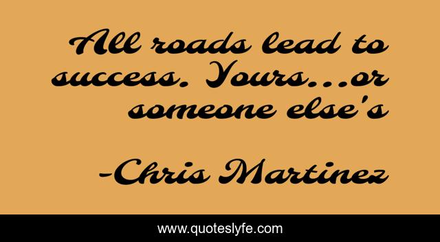 This page presents the quote "All roads lead to success. Yours...or someone else's". Author of this quote is Chris Martinez. This quote is about successful-living, success,.