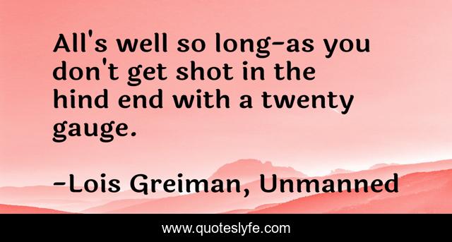 This page presents the quote "All's well so long-as you don't get shot in the hind end with a twenty gauge.". Author of this quote is Lois Greiman, Unmanned. This quote is about mystery, chick-lit, humor,.