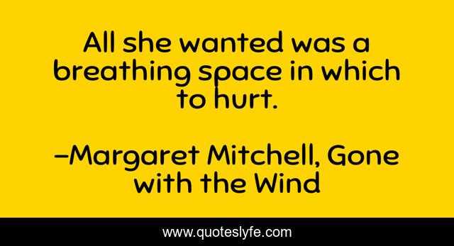 This page presents the quote "All she wanted was a breathing space in which to hurt.". Author of this quote is Margaret Mitchell, Gone with the Wind. This quote is about hurt, tears, breathing, emotions, space,.