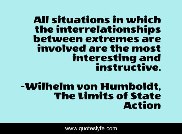 This page presents the quote "All situations in which the interrelationships between extremes are involved are the most interesting and instructive.". Author of this quote is Wilhelm von Humboldt, The Limits of State Action. This quote is about education, extremes,.