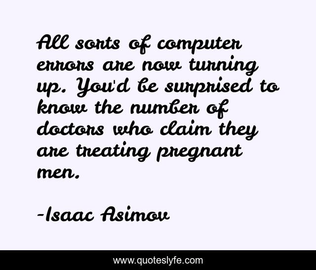 This page presents the quote "All sorts of computer errors are now turning up. You'd be surprised to know the number of doctors who claim they are treating pregnant men.". Author of this quote is Isaac Asimov. .