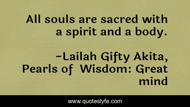 "Lailah Gifty Akita, Pearls of Wisdom: Great mind Quotes." Quoteslyfe.com, 2025. Tue. 09 Dec. 2025. <https://www.quoteslyfe.com/quote/All-souls-are-sacred-with-a-spirit-164708>.