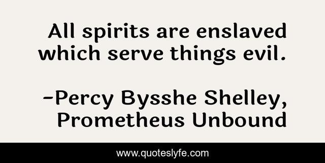 This page presents the quote "All spirits are enslaved which serve things evil.". Author of this quote is Percy Bysshe Shelley, Prometheus Unbound. This quote is about devil, sin, evil, bondage,.