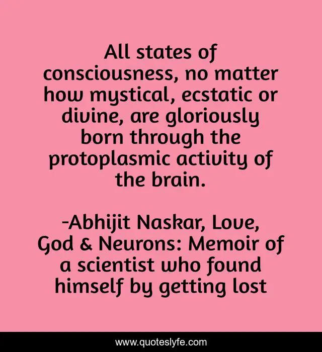 "Abhijit Naskar, Love, God & Neurons: Memoir of a scientist who found himself by getting lost Quotes." Quoteslyfe.com, 2025. Tue. 09 Dec. 2025. <https://www.quoteslyfe.com/quote/All-states-of-consciousness-no-matter-how-140225>.