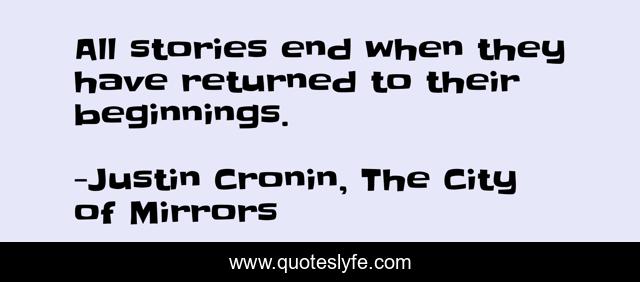 This page presents the quote "All stories end when they have returned to their beginnings.". Author of this quote is Justin Cronin, The City of Mirrors. This quote is about end, stories, beginnings,.