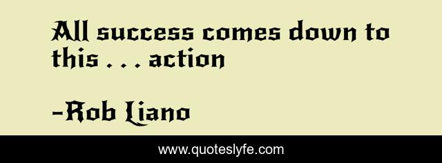 This page presents the quote "All success comes down to this . . . action". Author of this quote is Rob Liano. This quote is about motivation, efficiency-and-attitude, hard-work, work, focus, goals, action, success, inspiration,.