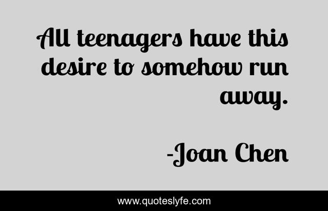 This page presents the quote "All teenagers have this desire to somehow run away.". Author of this quote is Joan Chen. This quote is about desire, run, teenagers,.