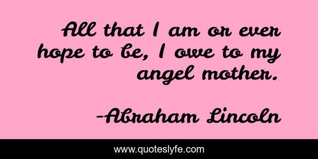 This page presents the quote "All that I am or ever hope to be, I owe to my angel mother.". Author of this quote is Abraham Lincoln. .